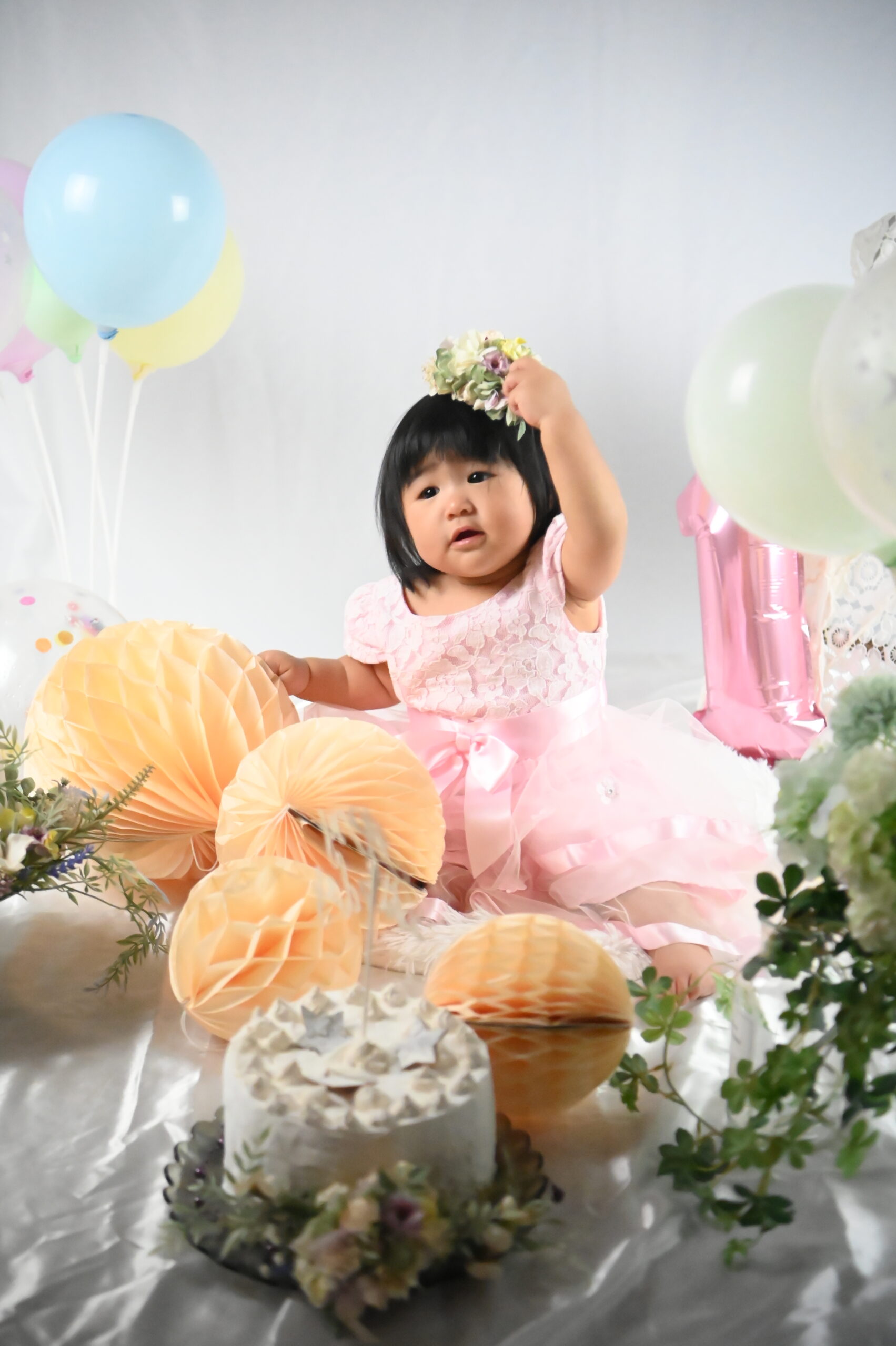 センスが光る作品作り。スタジオ内は本格的なアートフラワーなどを使用した非現実空間での撮影。一枚一枚のお写真にストーリー性を重視した、クリアで透明感あるお写真をお楽しみください。フォトアルバムや動画撮影もご好評いただいております。